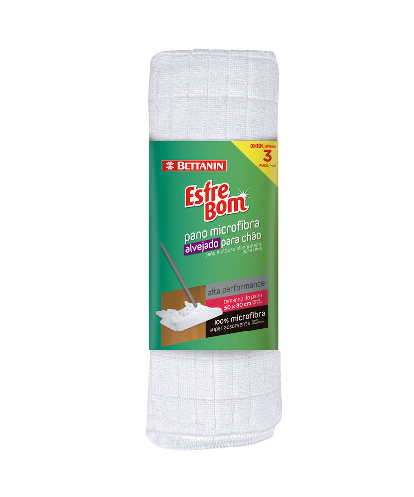 REF BT4984Para o melhor cuidado com seu chão, a EsfreBom tem o Pano Microfibra Alvejado para Chão. Com 3 unidades, é um pano super absorvente, com tecido 100% microfibra, que retêm mais pó e não soltam pelos. Pode ser lavado em máquina e reutilizado.